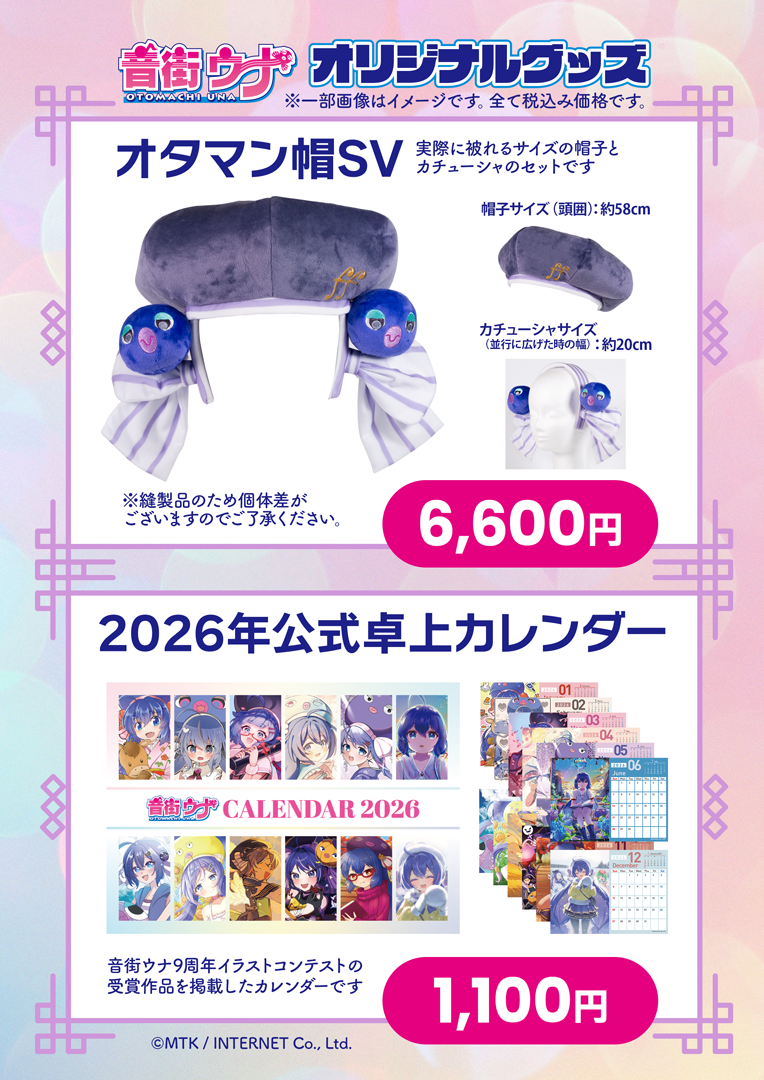 音街ウナ2026年公式卓上カレンダーと実際にかぶれるオタマン帽のSVタイプが新発売♪🙌🏻🙌🏻🙌🏻🥳🎉